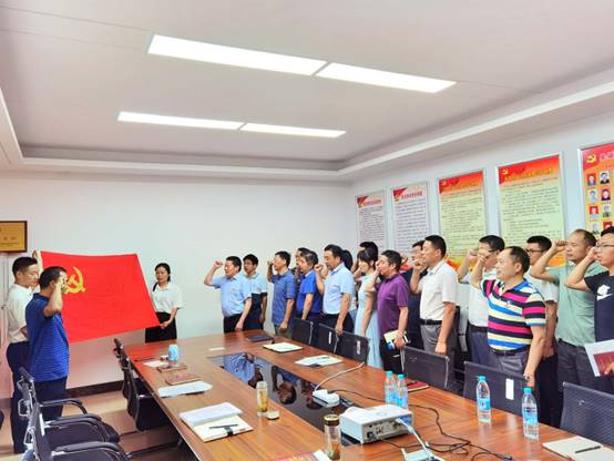 最后,全體黨員面對(duì)鮮紅的中國(guó)共產(chǎn)黨黨旗,莊嚴(yán)地舉起右手,握緊拳頭,集體宣讀入黨誓詞,重溫入黨時(shí)的莊嚴(yán)承諾和堅(jiān)定決心。紛紛表示,要不斷提高黨性修養(yǎng),堅(jiān)定理想信念,自覺(jué)踐行黨的宗旨,充分發(fā)揮先鋒模范作用,切實(shí)把初心使命變成銳意進(jìn)取、開(kāi)拓創(chuàng)新的精氣神和埋頭苦干、真抓實(shí)干的自覺(jué)行動(dòng),以優(yōu)異的成績(jī)向建黨99周年獻(xiàn)禮。