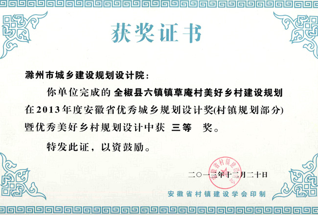 滁州市經(jīng)開區(qū)地形圖測繪規(guī)劃獲獎證書